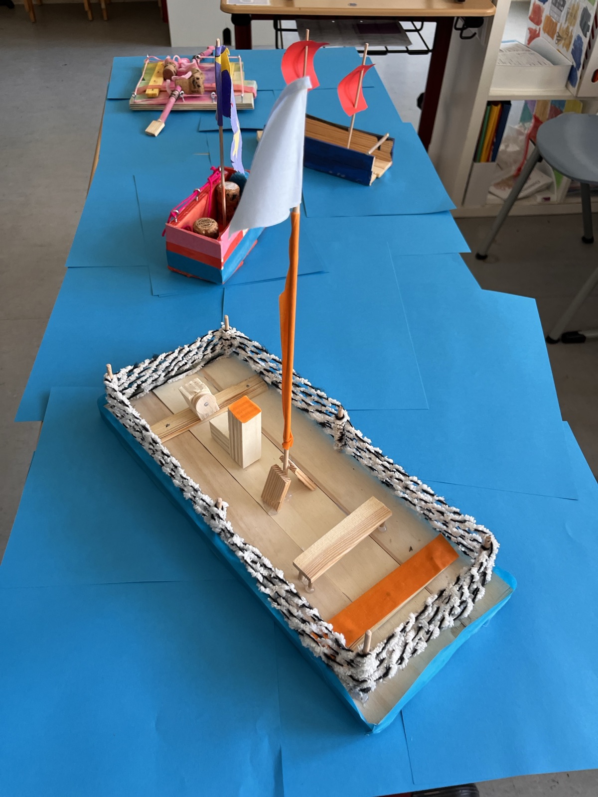 Die Klasse 1a hat Boote aus Holz hergestellt.