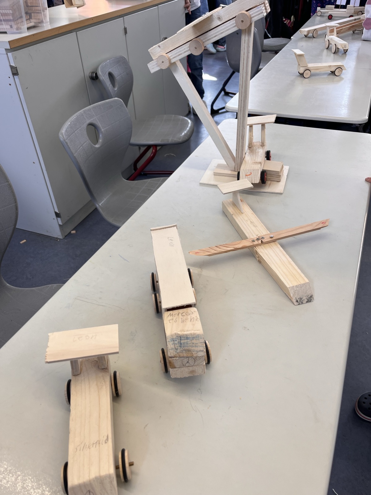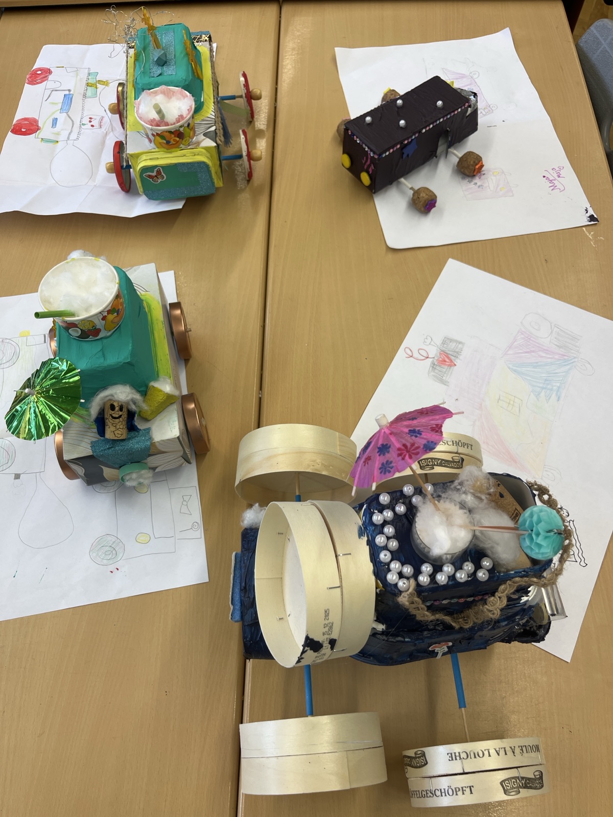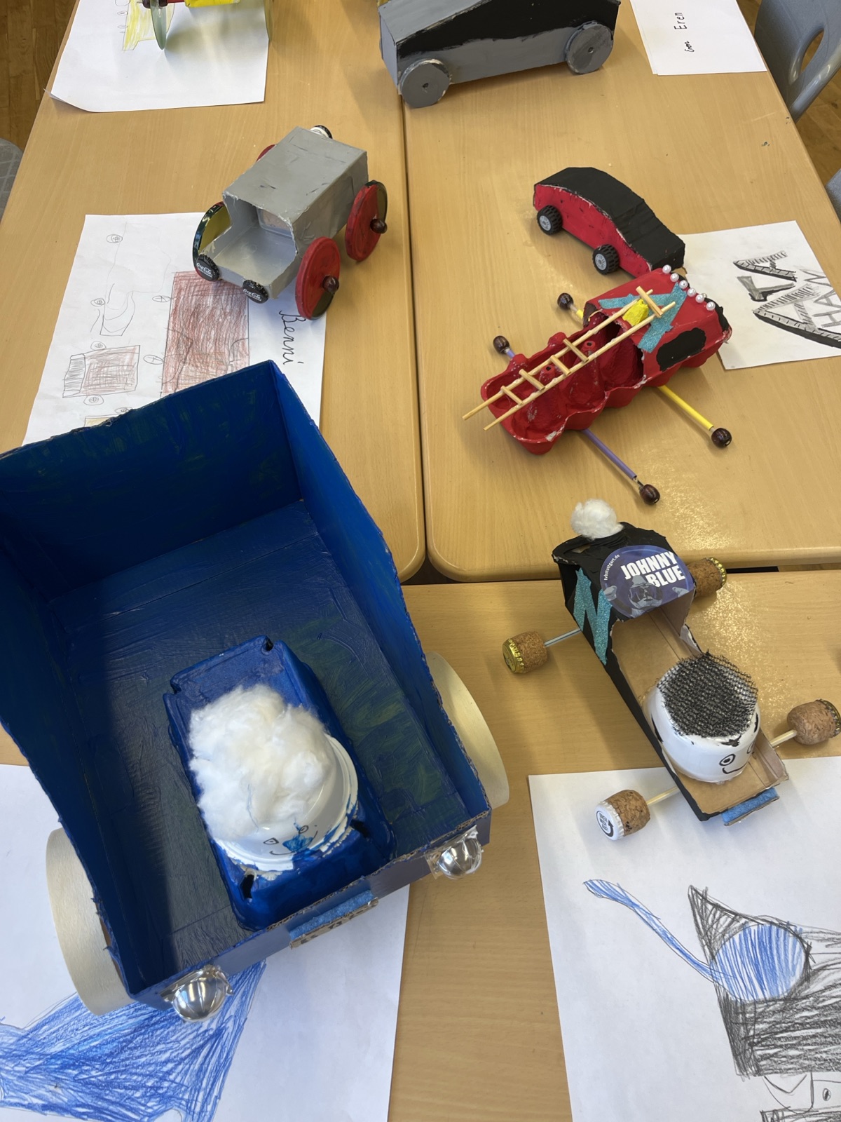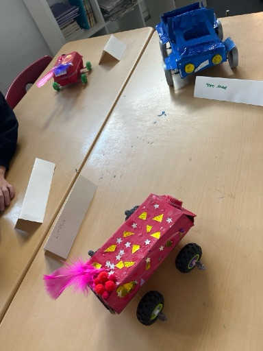 Die Klasse 4b hat Fahrzeuge angefertigt.