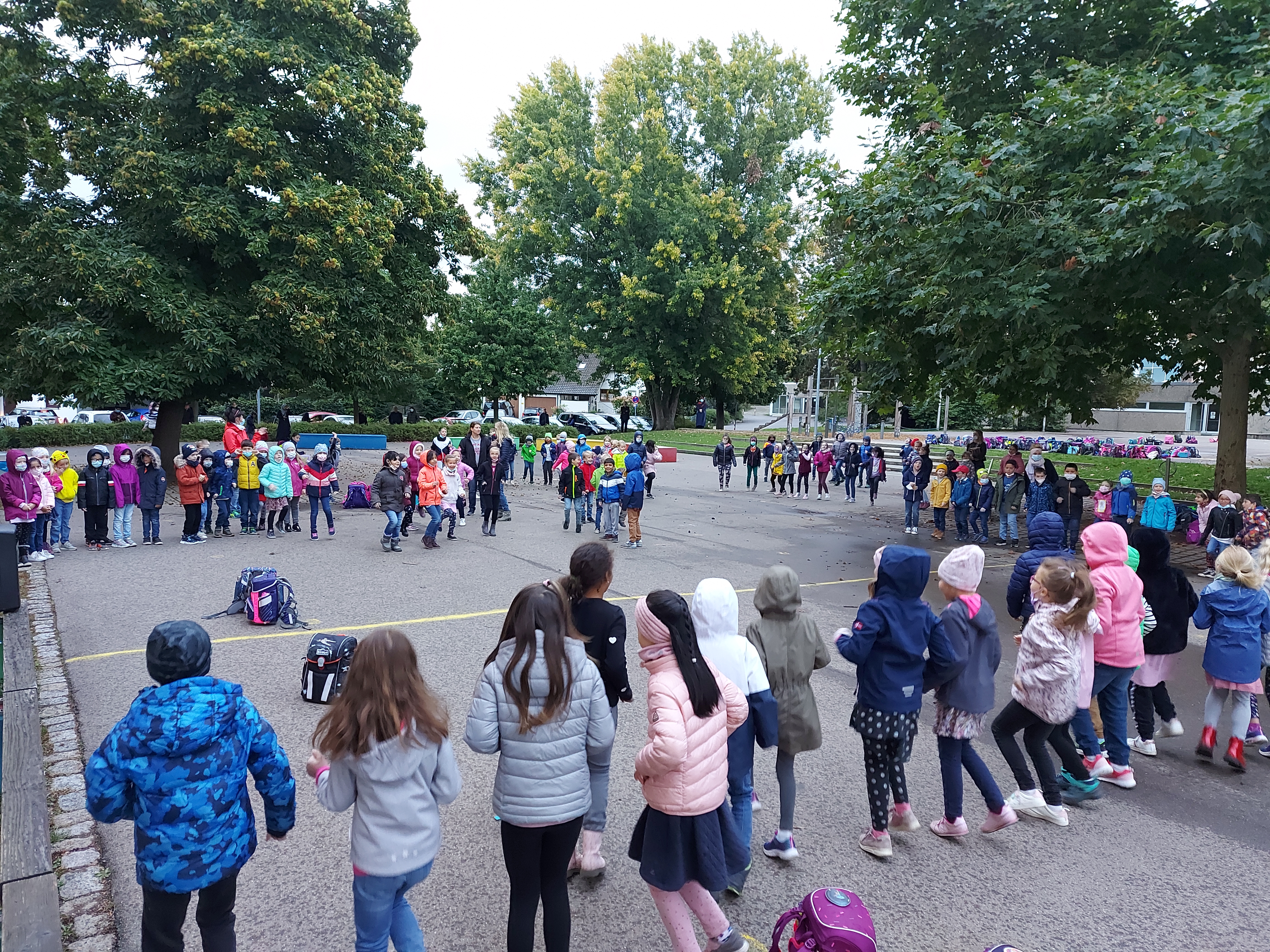 Am 6. Oktober 2021 trafen sich die Klassen vor Unterrichtsbeginn um 7:45 Uhr und um 8:30 Uhr auf dem Schulhof. Die Klasse 2b zeigte ein tolles Theaterstück mit Interviews zum Thema „Zu Fuß zur Schule“.